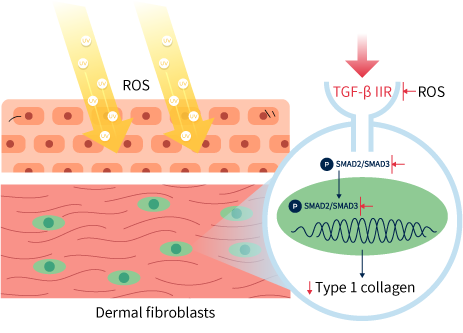The skin follows two distinct instructions for synthesis and breakdown processes. When the breakdown signals (such as IL-1, IL-6, etc.) are issued, cells secrete enzymes to degrade extracellular matrix components like collagen, hyaluronic acid, elastin, and others. Conversely, upon receiving the synthesis signal TGF-β, dermal fibroblasts proliferate, initiating a substantial synthesis of extracellular matrix components.